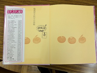 また、表紙か裏表紙を開けてみると「鳳至小学校」というハンコが押してあります。