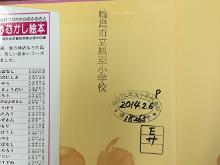確認する方法は、本の表紙か裏表紙「鳳至小学校」と書いたバーコードが貼ってあります。