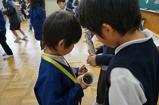 12月2日に1年生が生活科で準備した「あきのおもちゃ」を紹介しました。