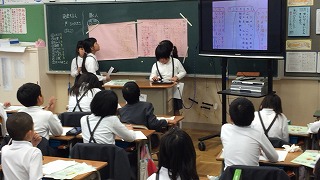 今日は、その調べたことを模造紙にまとめ、自分の担当したことを詳しく発表しました。