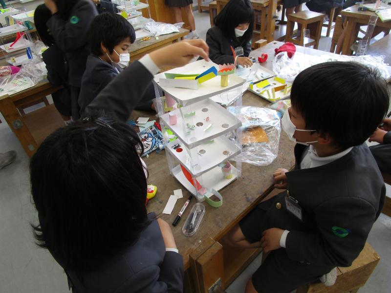 図工の時間に、ビー玉を使った迷路作りに取り組みました。いろいろな仕掛けを工夫して考え、世界に一つだけの迷路が完成しました!
