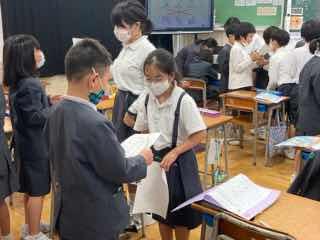 総合的な学習の時間で、「輪島朝市」について調べました。調べて分かったことを文字や色を工夫しながらポスターにまとめ、みんなの前で発表することができました。調べ学習を通して、新しい発見に出会えたことと思います。