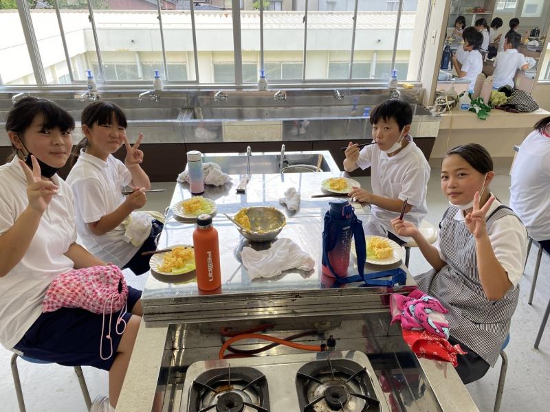家庭科「おいしい楽しい調理の力」の学習で、ゆで野菜サラダを作りました。先週、根菜類と葉物では、ゆで方が違うということを比較実験し、そのことを踏まえて今日はグループごとにサラダを作りました!