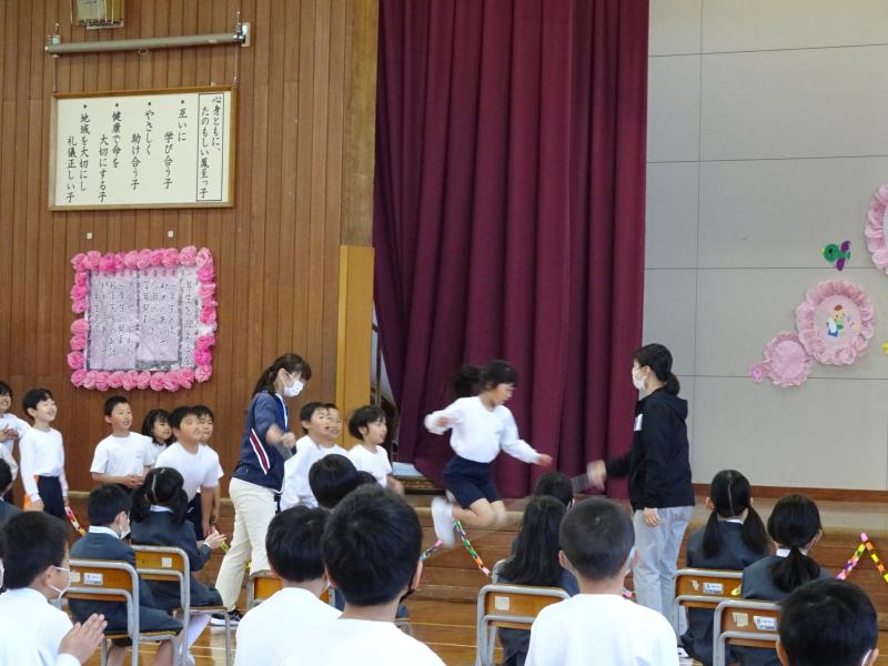 本番では、ダンスと八の字跳びをしました。八の字跳びは、70回を目標に練習していましたが、一度も達成したことがありませんでした。ですが、本番で79回!練習した成果が出て、本当に嬉しそうでした!