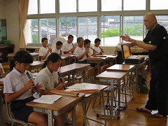 三夜踊り組合の方々にお囃子の練習をしていただきました。