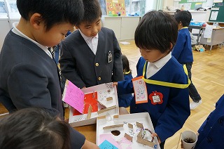 12月2日に1年生が生活科で準備した「あきのおもちゃ」を紹介しました。