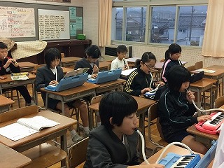 4年生は音楽の時間に「茶色の小びん」の合奏をしました。グループに分かれ練習から意欲的です。金管鼓笛で毎日頑張っている子どもたちなので、音楽の合奏も「音を合わせる」ことを楽しみにしていました。両クラスともとてもいい演奏をすることができました。振り返りに「心も一つになったようですごく嬉しかったです。」と書かれていました。また1つ成長した4年生です。