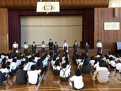各学年の学級委員と各児童委員会の委員長に任命書を手渡しました。