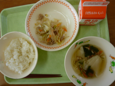 ごはん ワンタンスープ 豚肉の生姜煮 牛乳