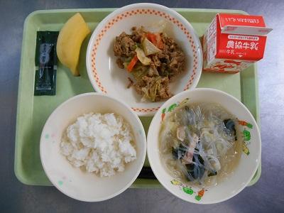 給食では、緑豆のでん粉から作った緑豆はるさめを