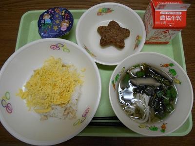 あまのがわと見立てたそうめん、星に見立てたオクラを入れた