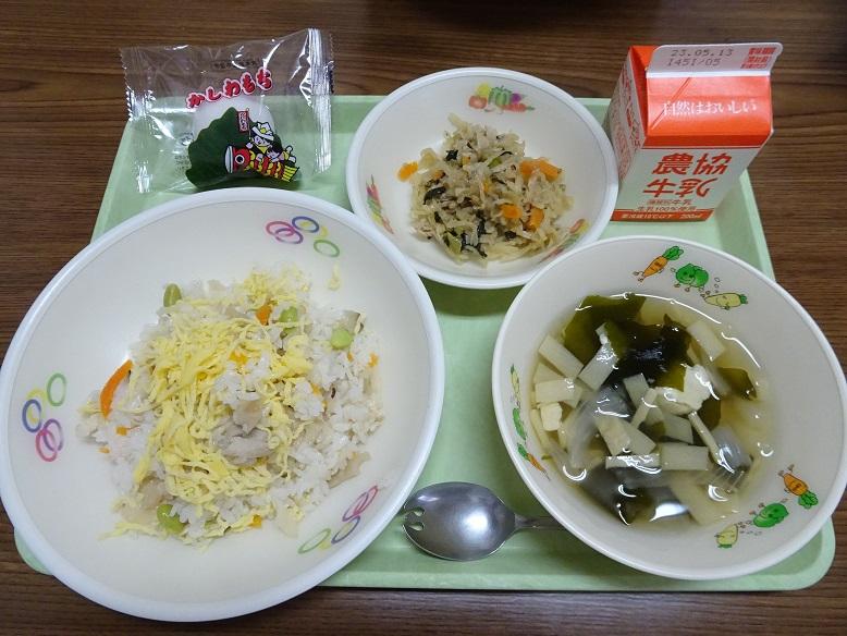 今日はちょっと遅くなりましたが、子どもの日給食ということで、柏餅が給食に登場しました。