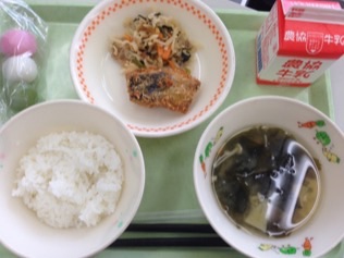 給食も春が旬のさわらのフライはサクッとおいしく、若竹汁もたけのこの
