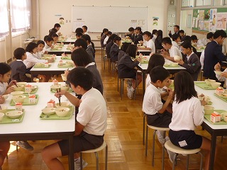 配膳までは、にぎやか。食べ始めると静かになる2年生と6年生(笑)