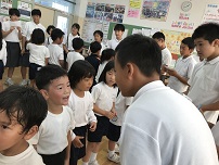 今週はEnglish weekです。今日はEnglish timeとCommunication timeを行いました。ペア学年との交流もだんだん慣れてきました。今回は,4・5・6年生が“What  ~ do you like?”と質問して,1・2・3年生が答えることができました。どの学年も伝え合うことができました。笑顔で伝えようとする姿が素敵でした。