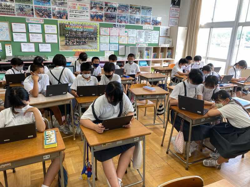 2学期に予定されている「輪島市小学生合唱の集い」に向けて、歌う曲をみんなで考えています。「自分達らしさを表現できる曲」「34人の明るさ、元気さが伝わる曲」は何か、クロームブックをもとに調べました。さて、どんな曲が選ばれるのか?