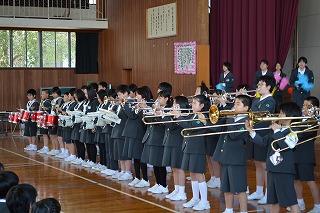 各自の鼓隊の楽器を使って「明日があるさ」の迫力ある演奏
