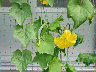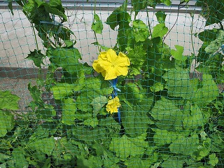 ヘチマが大きく育ちました。小さな実も何個か見られます。