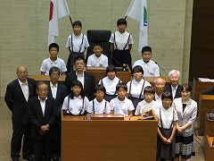 梶市長さんのご挨拶の後、いよいよ本校児童の登場です。
