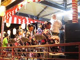 本校児童は、櫓の上に上がり、三味線・唄・笛・太鼓を担当し、大変上手なお囃子を披露してくれました。