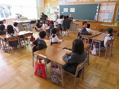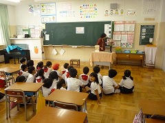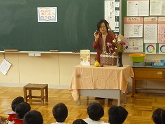 今日は各学年で学んだことや楽しそうな物語を他の学年へ訪問しお話の会をしました。