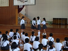 6年生の女子が各グループの誘導を行いました。