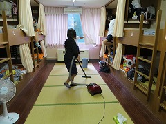 子どもたちが帰った後、職員でワックスがけです。