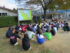 秋晴れの空の下、ほとんどの子どもたちが運動場に集合です。