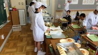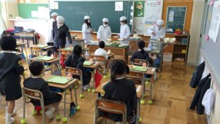 待っている姿勢が小学生らしくなってきました。6年生の配膳もしっかり素早くできています。