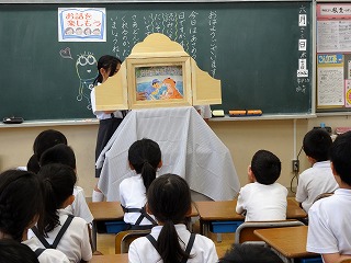 4年生は、役割を決め、効果音はみんなで声を合わせて読むなど、工夫しながら読んでくれました。2年生も静かに食い入るように聞いていました。