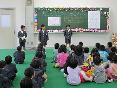 1年1組の子どもたちが、ミドリ保育園の年長さんを招待し