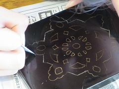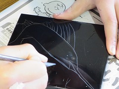 初めての沈金ノミを上手に使い、集中して取り組んでいました。