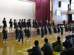 集会委員会の生演奏で、今月の歌「チャレンジ」を全校で歌いました。
