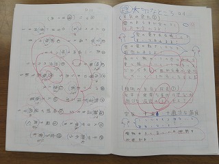 一人一人がテーマを持って学習したことをノートにまとめています。