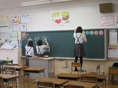 1年生から6年生までが昼休み校長室に自分のノートを持って集まります。