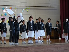 各学年の発表は、1年生にとって学校の様子などが分かりやすく、