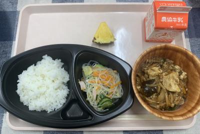 ごはん,マーボーナス,バンサンスー,パイナップル,牛乳