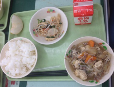 ごはん  すき焼き風煮  五目なます  フルーツ(梨)  牛乳