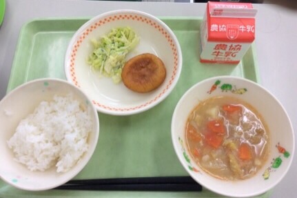 今日の給食ではあっさりとしたかつおだしの味付けにしました。