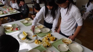 5年生が優しく、頼もしく1年生の分も盛り付けてくれました。