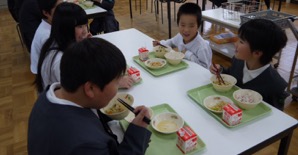 どの教室へ行っても、子どもたちはいつも以上にニコニコと嬉しそうに食べていました!
