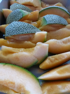 今日の給食には、山本町でメロン栽培をされている「煌会」の方々から