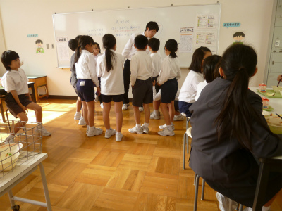 今日は、3年2組と4年1組がフルーツバイキングをしました。