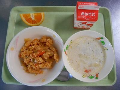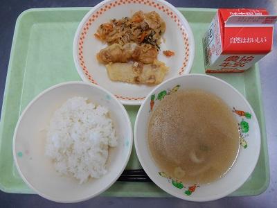 今日は今年度、何回か登場しています、さざえごはん給食です。
