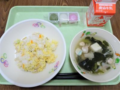 今日も、オイスターソースのコクがきいた具を1クラス分ずつ調理員さんがご飯にむらなく混ぜこんでくれました。