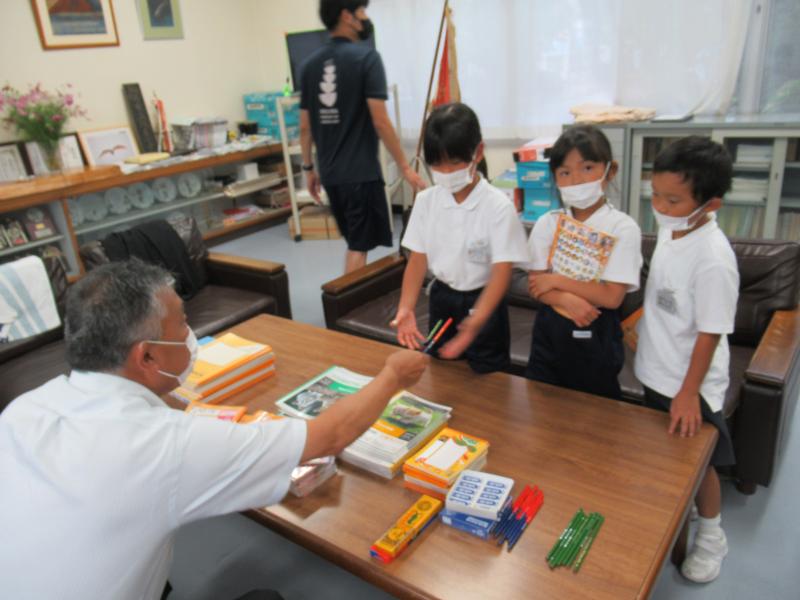 このバリベンは1冊が終わるたびに校長室で表彰され、文房具などが当たります。1年生でもさっそく、6人の児童が表彰されました。