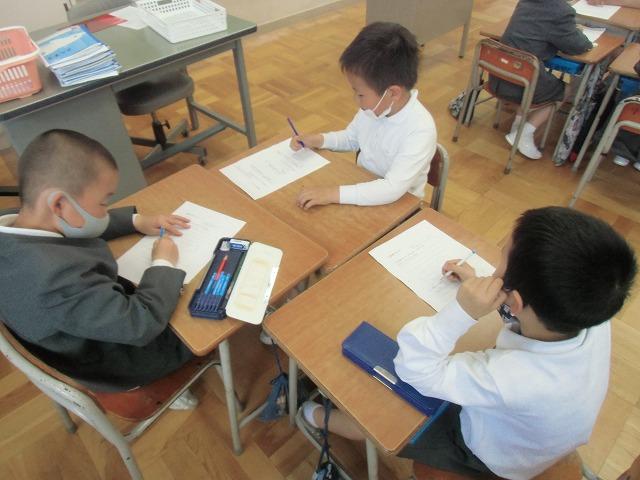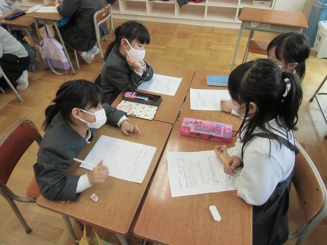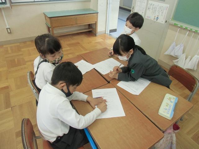 先日、初めての6限授業がありました。「2年生になって頑張りたいこと」「1年生にしてあげたいこと」をグループに分かれて話し合いました。