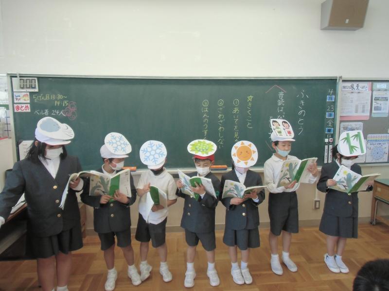 国語の授業で練習を続けてきた、ふきのとうの音読発表会を行いました。おうちの人がたくさんいる中での発表だったので、子どもたちから緊張感が伝わってきました。しかし、それぞれが工夫して、自分の役を精一杯努めることができていました!