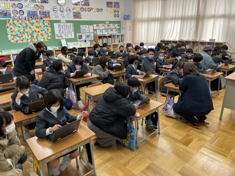 5限目の授業参観では、プログラミングの授業を行いました。プログラミングについて学んだ後、スクラッチというアプリを使って、プログラミングのゲームを行いました。どのように組み合わせればいいかを考え、操作することができていました!