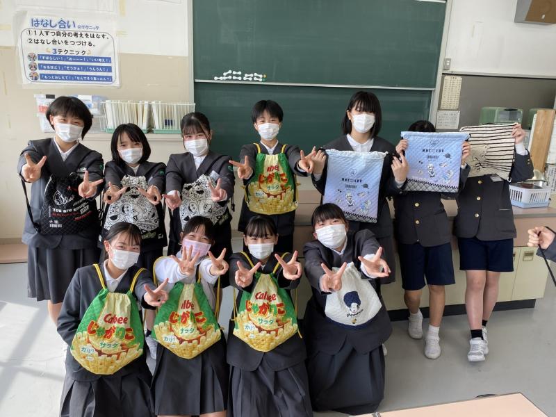 家庭科の「ミシンにトライ!手作りで楽しい生活」の学習で、ナップザックやトートバッグを製作しました!初めてミシンを使う子どもたちは何度も何度も縫い直しながら、自分の力で作品を完成させました!